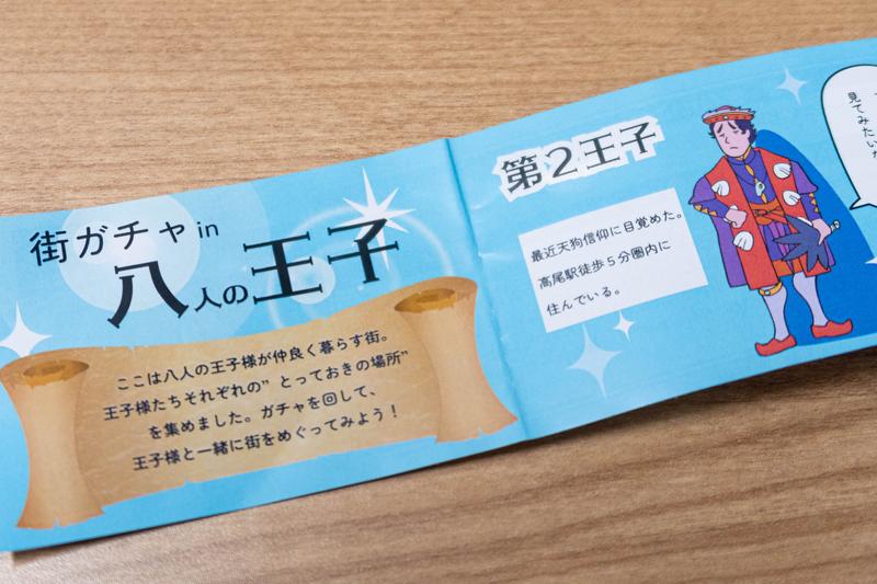 今回の景品は「第2王子」。設定によると「最近天狗信仰に目覚めた。高尾駅徒歩5分圏内に住んでいる」とのこと。コミカルなストーリー付きで、全キャラ制覇したくなります!