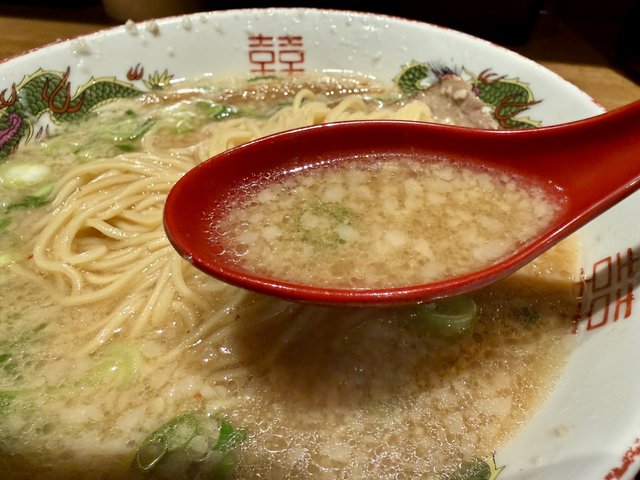 ほんのりと一味が効いており、スープに立体感を与えています。背脂たっぷりながら重さはなく、スープと一体になったまろやかな味わいです。