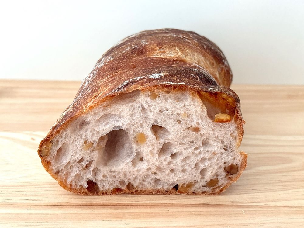 柑橘の爽やかなオレンジピールと、香ばしいクルミが絶妙に組み合わされたこのパンは、噛むほどに広がる風味が魅力。