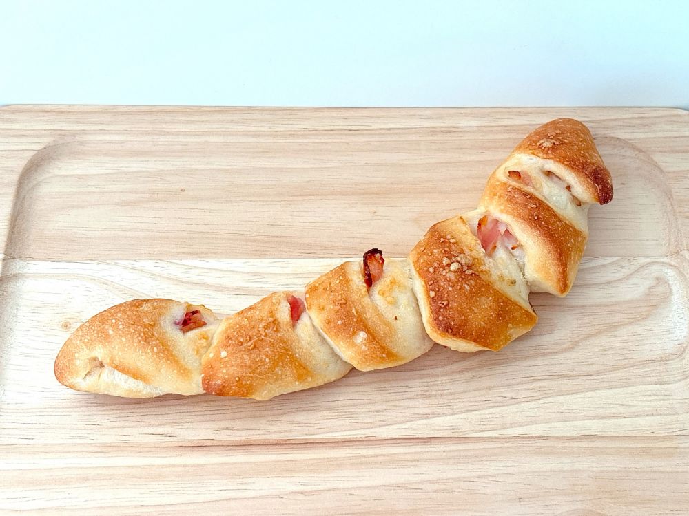 ハード生地の中にベーコン。朝食にもワインのお供にもぴったりの一品です。