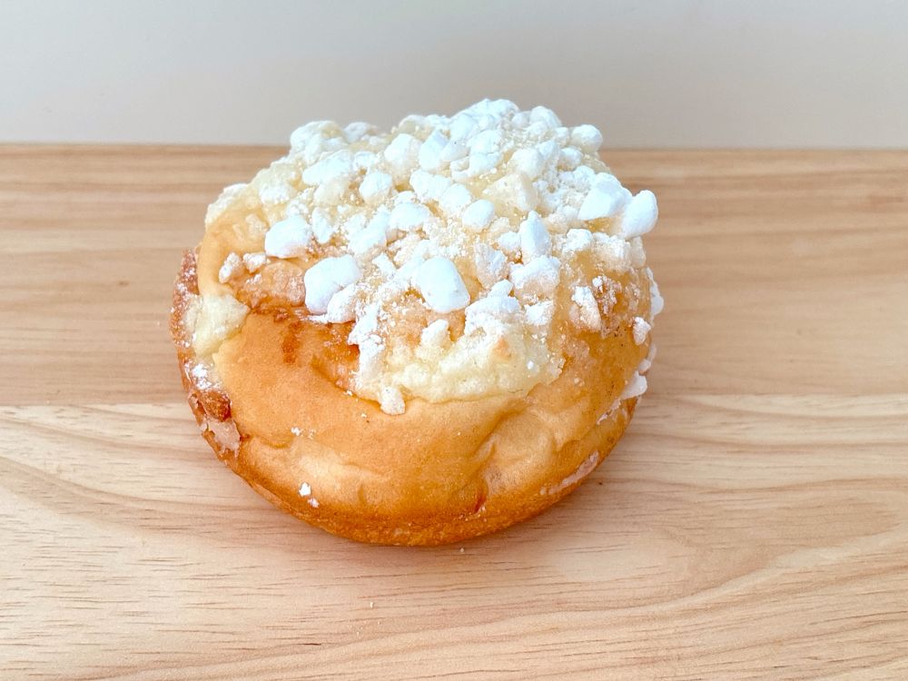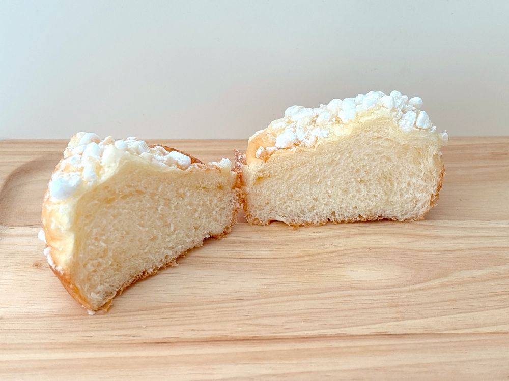 サクッふわっ食感。表面をマカロン生地で包み込んだこのメロンパンは、サクサクとしたマカロンが、ふんわりとしたパン生地とマッチしています。ワッフルシュガーのカリカリ感がアクセントに。