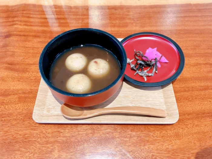 デザートには「とうふ白玉おしるこ」がついていました。絶妙な甘さのおしるこに、ふわっととろける白玉。もっちりというよりふわふわ食感の白玉は、おなかがいっぱいでもペロリと食べられてしまう軽さです。