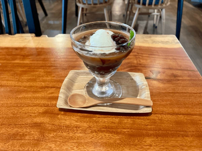 あんこをコーヒーゼリーと組み合わせた甘味もいただきました。あんこの甘さとほろ苦いコーヒーゼリーがとてもよく合います。そこにクリーミーなアイスが加わると、間違いない美味しさ!