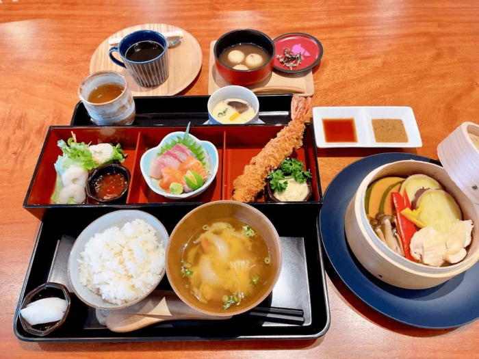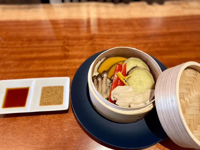 たっぷりの野菜がヘルシーなせいろ蒸し、お刺身、茶碗蒸し…。サラダの代わりに生野菜たっぷりの「生春巻き」がついているのも嬉しいポイントです。