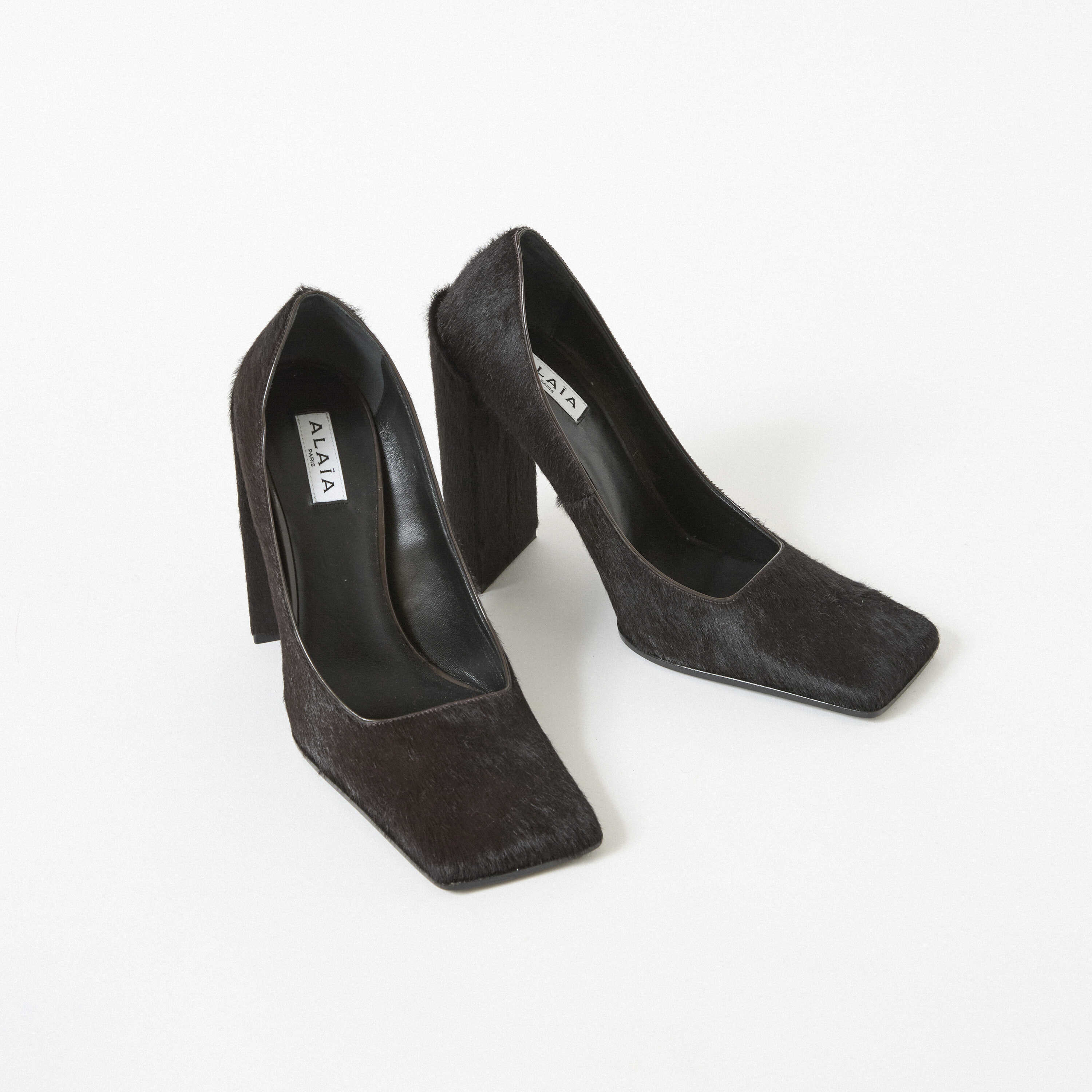 やっと秋めいてきましたね。今季、スクエアトゥが気になっています。なぜなら、展示会で見かけた〈ALAÏA(アライア)〉のパンプスが最高に美しかったから。佇まいはマニッシュなのに、漂うのは淑女のムード。柔らかくきめ細かいヘアーカーフレザーと深いチョコレートカラーが、大胆でエッジの効いたシルエットを際立てています。〈ALAÏA〉のランウェイでは、女性らしいプリーツスカートやたっぷりとしたドレープがあるドレスにスクエアトゥのシューズを合わせていました。そのルックの美しさも相まって、少しレディを気取りたい今季の気分にしっくり来たんです。