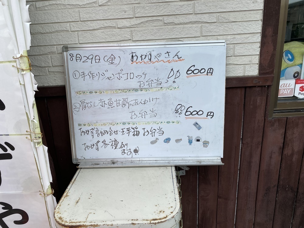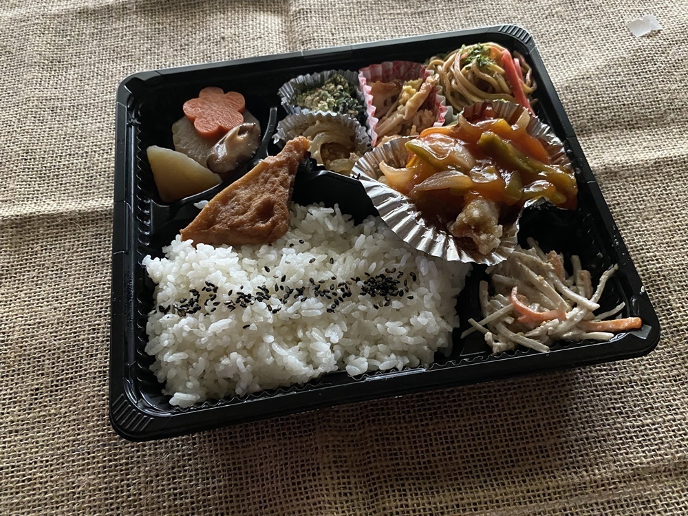 この日の弁当は、「手作りジャンボコロッケのお弁当」と「骨なし赤魚甘酢あんかけのお弁当」の2種類で、どちらも600円でした。