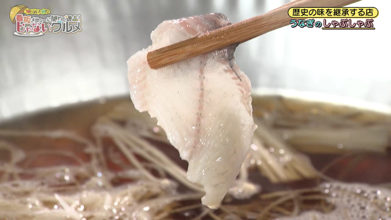 そんな由緒ある味を守る「とりや茶屋」のじゃないグルメは、ご主人の松下さんが考案した『うなぎのしゃぶしゃぶ』(要予約)です。