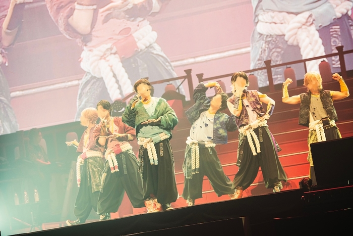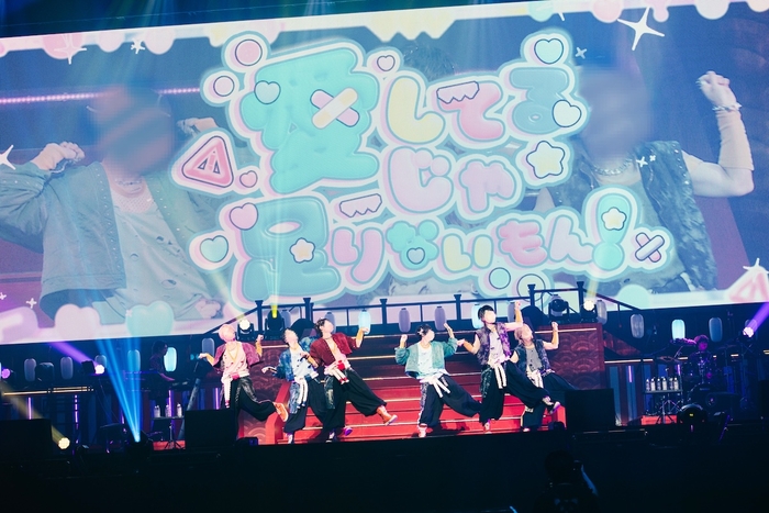 ここで、再び映像タイムとなる。前半の映像に続き、メンバーに突きつけられたミッションは『「恋の約束」のラスサビに合わせてファンサ』や『ツンデレ全開でリスナーへ感謝を叫ぶ』など、彼らからすれば比較的ハードルの低そうな(?)内容。各自、カメラ目線で次々と渾身の言葉をひねり出していく。そんな中、なぜか悠佑が照れまくり、最後の最後に「……いつもマジでありがとう!」と感謝の言葉を投げかけ、場内から狂喜の声援を浴びた。