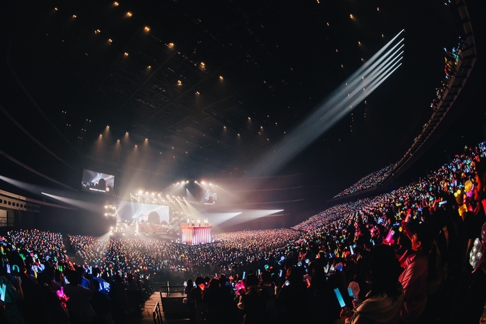 続いては、ないこのソロコーナー。ペンライトが一斉に彼のメンバーカラー、ピンクに染まる。キュンとするポップチューン「今日も明日も明後日もキュン死」を熱唱してくれたないこ。曲中にMCを入れ込み、「僕たち、いれいすの夢は東京ドームです」と、グループの夢を語り出す。関係者やスタッフ、もちろんいれりすも含めた全ての人に感謝を伝えながら「みんなの力、全部合わせて、俺たちで東京ドームに行きましょう!」と、堂々の決意表明。最後、「愛してるぜ~!」と締めくくった。