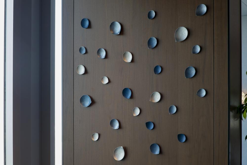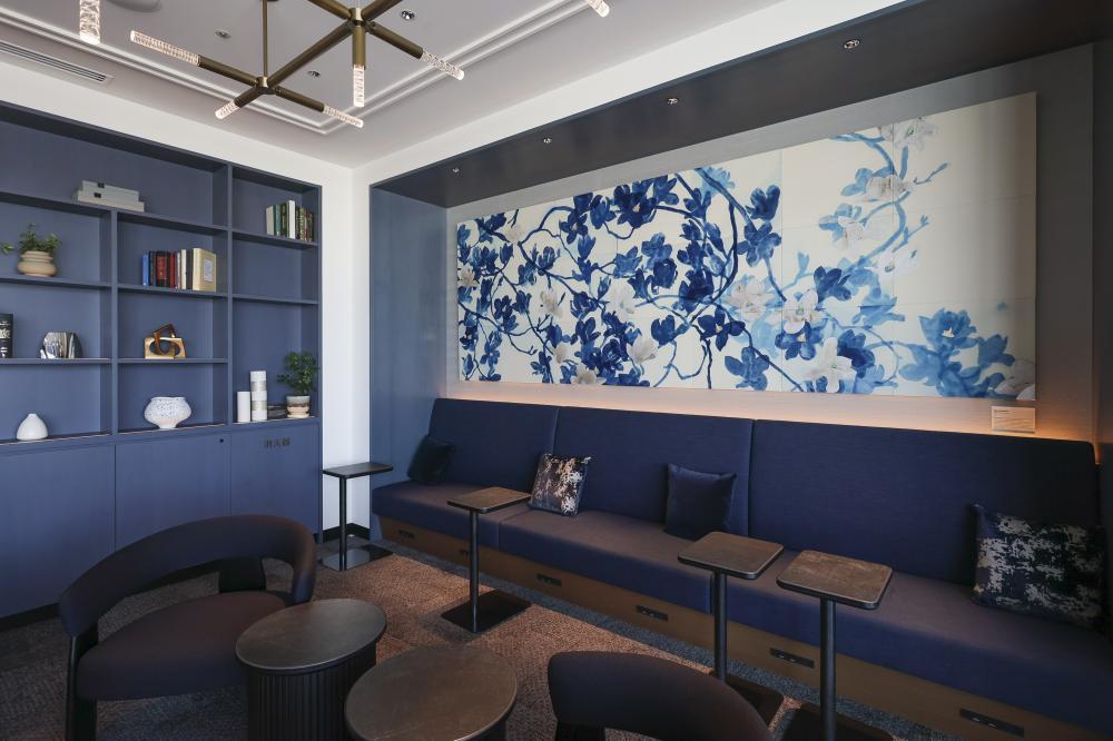羽田空港にあるラウンジは、ジャパンブルーの世界が広がります。切子ガラスや組子細工といった日本らしさあふれる、ラグジュアリーな空間。