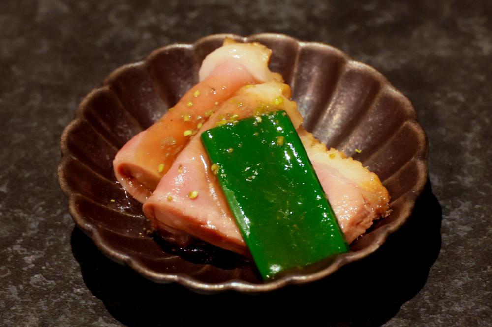 「赤坂 おぎ乃」の定番であり、荻野氏おすすめの一品。鮪の奥深い味わいを引き出すため、香り付けとして燻製醤油を用いてサッと漬け込んでいます。