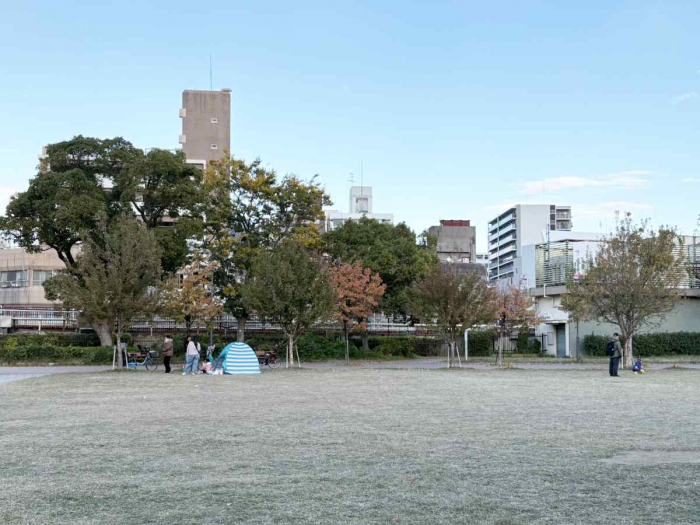 訪れたのは15時頃の昼下がり。東側ではブランコで遊ぶ子どもたちや家族連れの姿があり、穏やかな時間が流れていました。