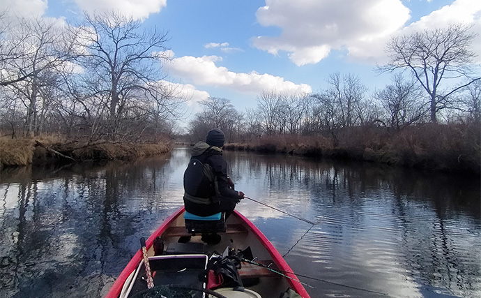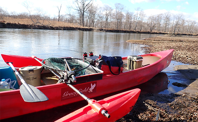 「今日は油断すると氷のオブジェ確定だな」と苦笑いしつつ、今年もカヌーフィッシングの始まりだ。