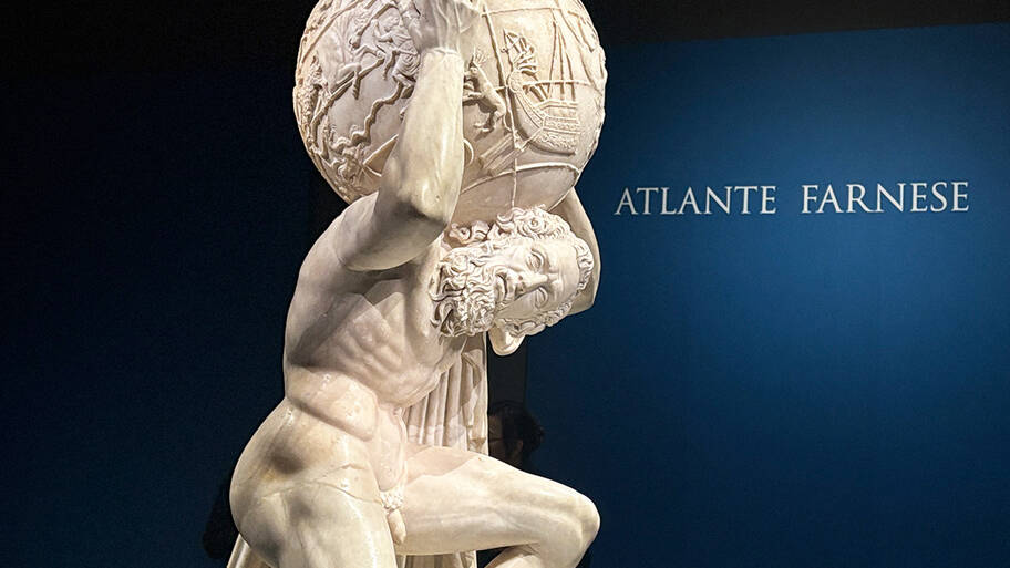 同展は、日伊国交160周年記念および大阪・関西万博開催記念として開催されるもの。ギリシャ神話の神アトラスが肩に天球儀を載せた彫刻「ファルネーゼのアトラス」や、万博でイタリア国外初公開されたペルジーノの「正義の旗」を展示する。このほか、レオナルド・ダ・ヴィンチの「アトランティコ手稿」から、万博で展示したものと別の2点も出品される。