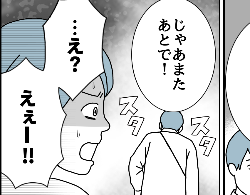 「じゃまたあとで!」と爽やかに言い残し、妻をその場に置き去りにして立ち去る夫。え、ドユコト? 一緒に食べないのー!?