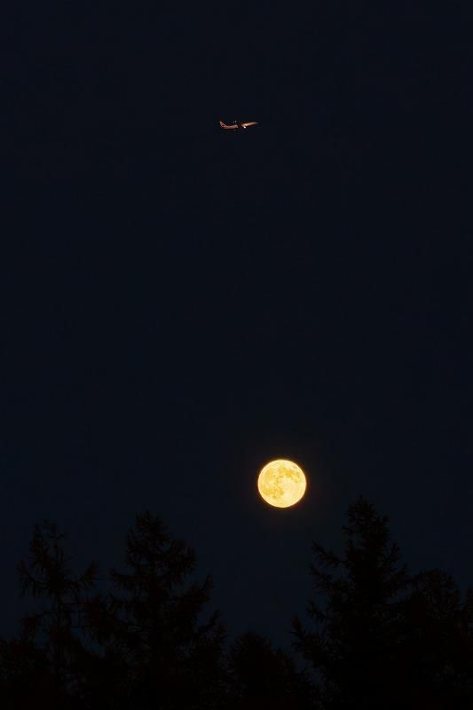 とかち帯広空港も近いので、スーパームーンの上を飛行機が横切ります。
