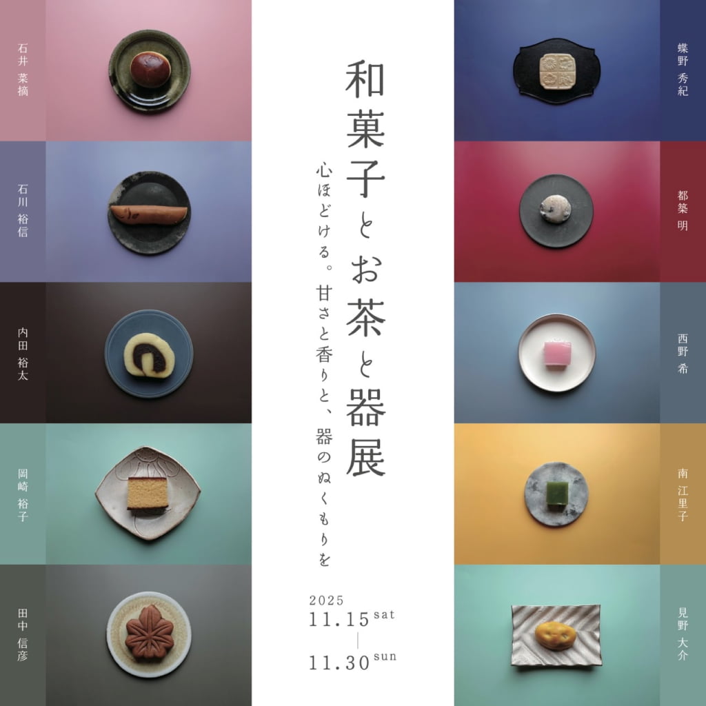 11月30日(日)までは同ギャラリーにて、全国の和菓子に合う器作家の作品とお茶の名店が集まる「和菓子とお茶と器展」も開催中。「煎茶堂東京」「ISSO」「GOOD TIMING TEA」といった注目ブランドのお茶がそろい、和菓子・お茶・器が織りなす“和の世界”を五感で体験できる特別企画展です。