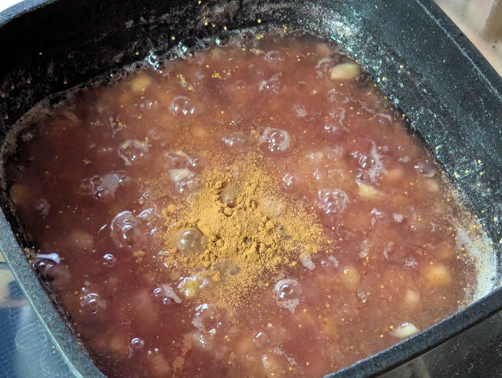 5. とろみが出てきたら、シナモンを加えてひと煮立ちさせます。