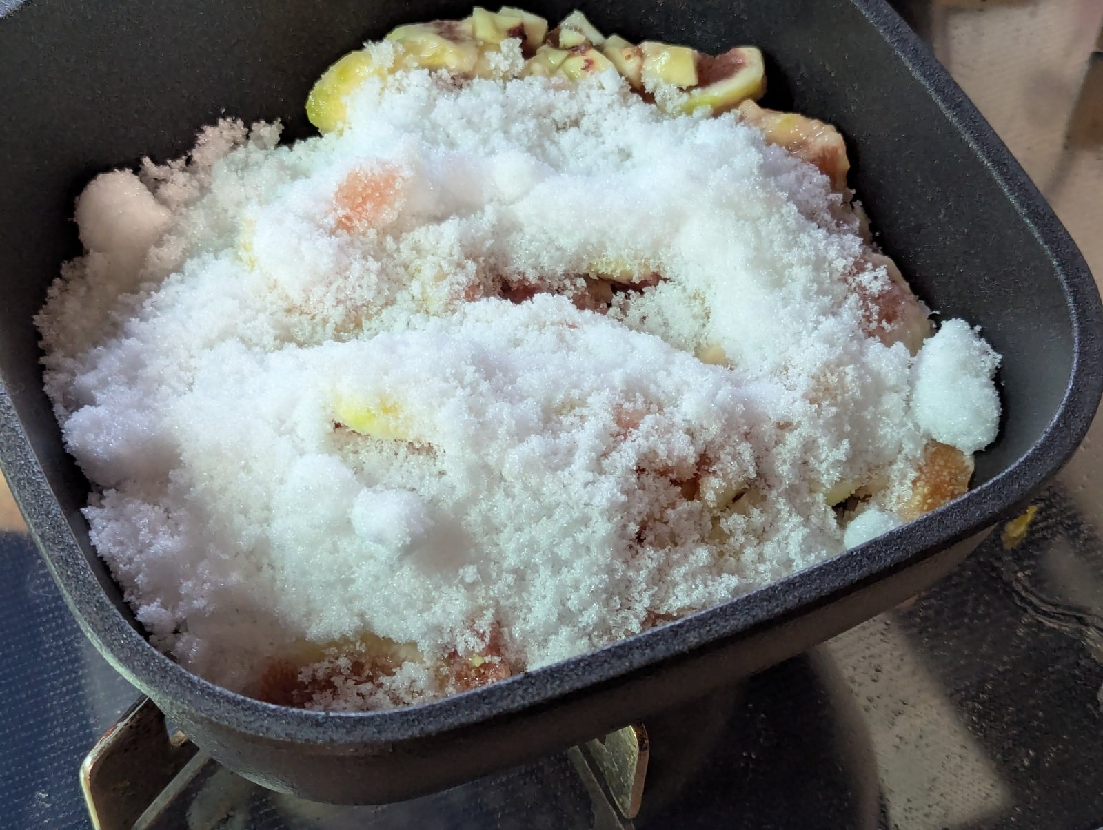 3. 鍋にいちじく、砂糖、レモン汁をいれます。