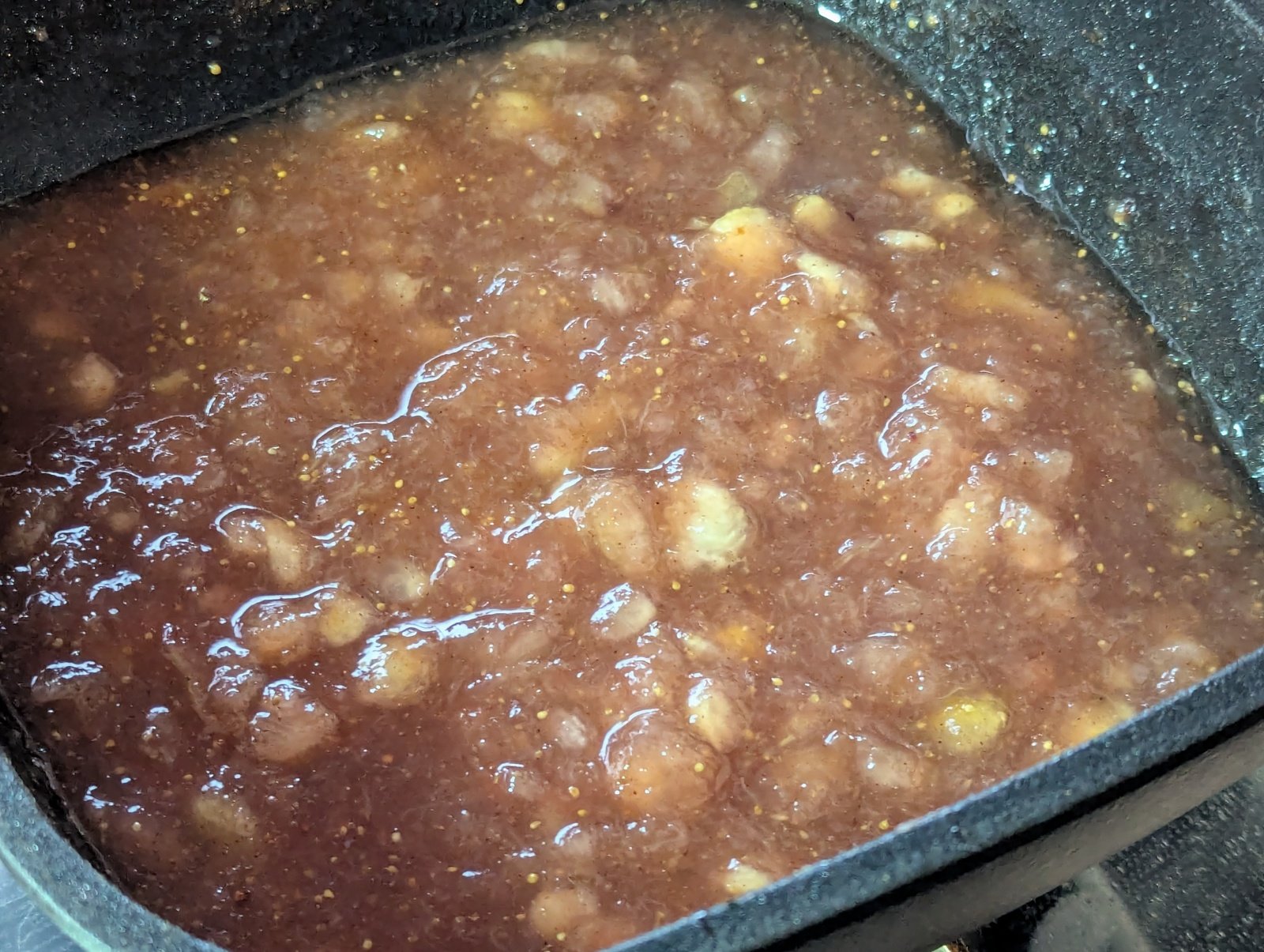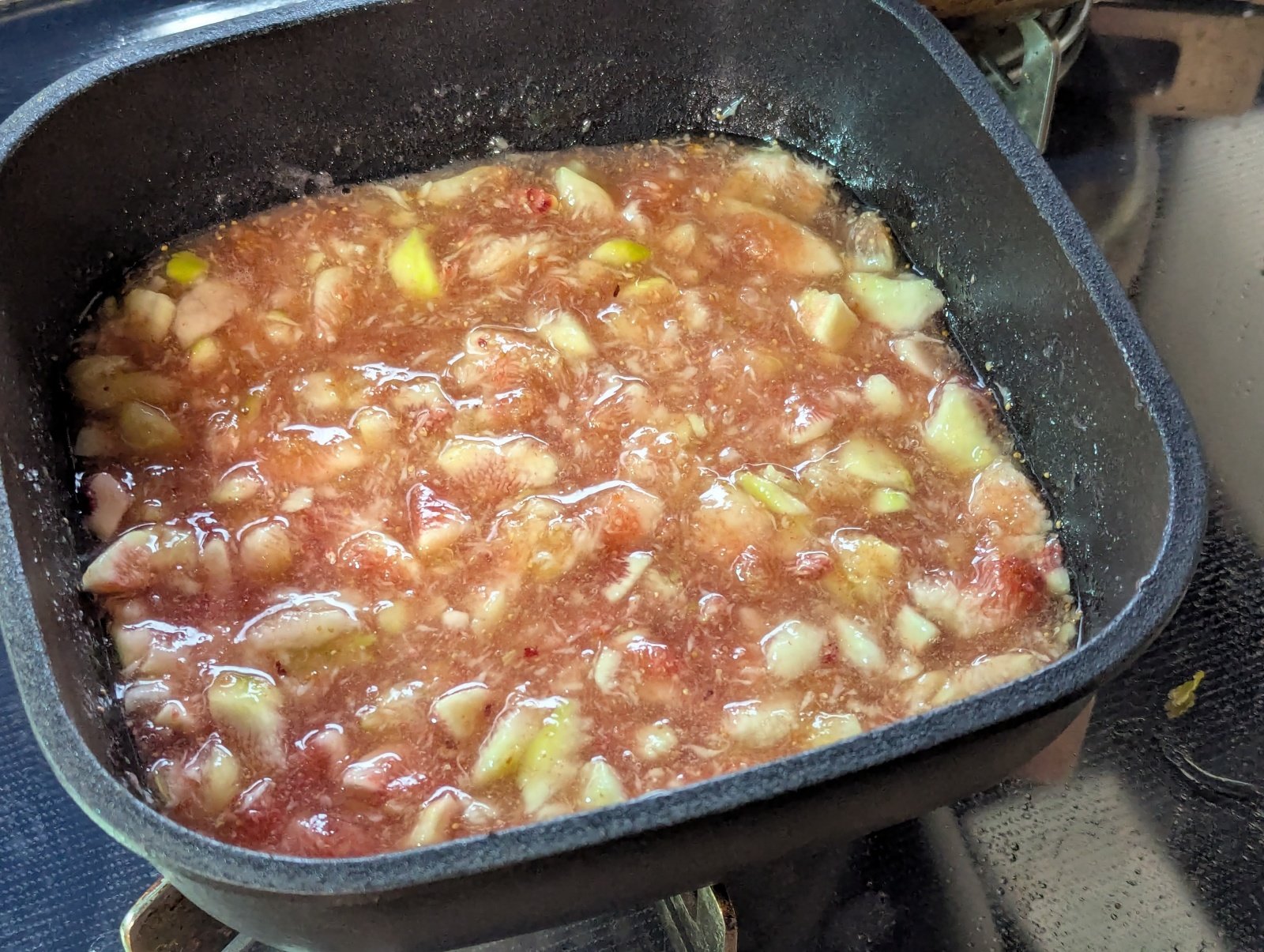 4. いちじくは水分が多いので、中火で吹きこぼれないように煮詰めていきます。