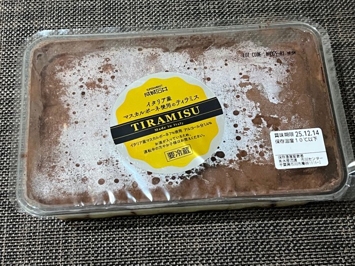そこで、普段は買わないサイズのスイーツ(イタリア産マスカルポーネ仕様のティラミス / 500gで1070円)を買う。まさに豪遊。