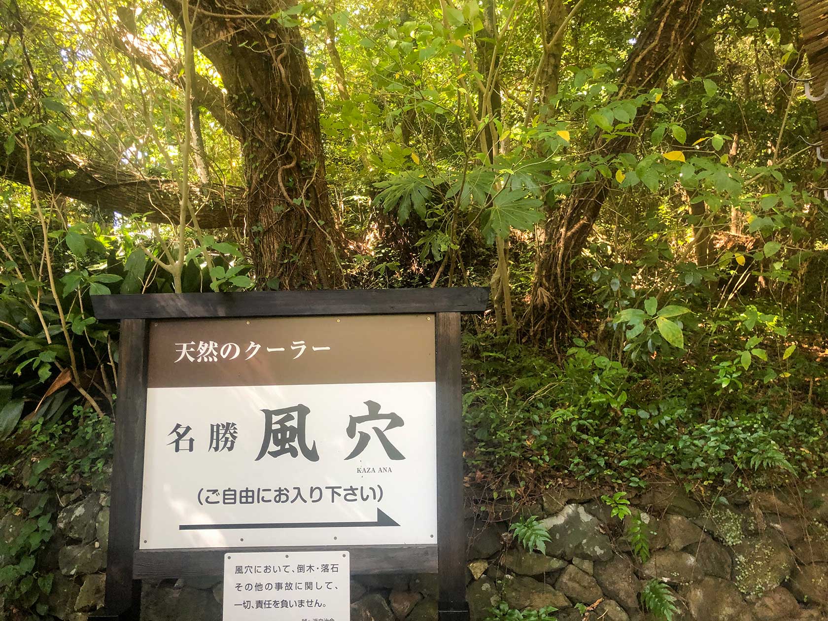 昼食(各自で用意)後、笠山へマイクロバスで移動する。ここには風穴があり、岩の隙間から真夏でも15度前後の冷たい空気が流れ出ている。そのため、温帯と寒帯の植物が共存しており、どちらも観察できる希少な場所となっている。少雨決行。