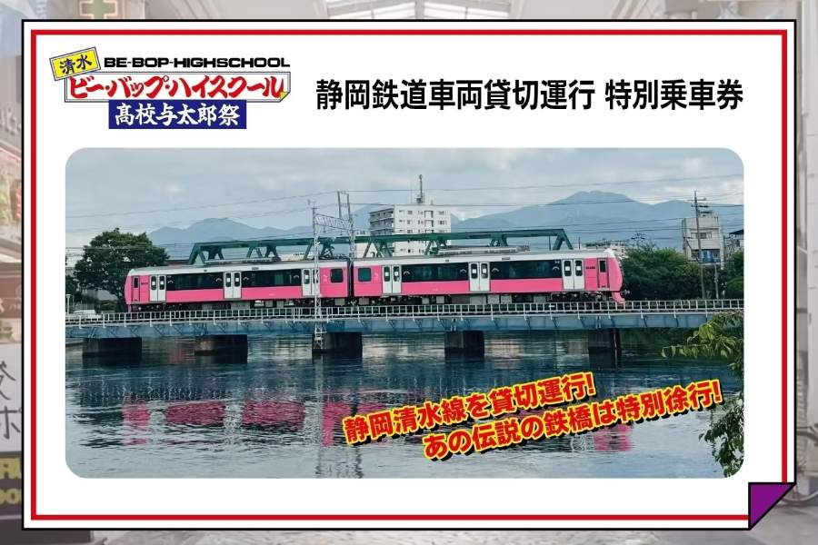 中でも一番胸熱なのが、「静岡鉄道車両貸切運行の特別乗車券」。この路線は、電車内で大乱闘が繰り広げられ、敵が鉄橋から川へ突き落とされるという、ファンにはおなじみの伝説的シーン「鉄橋ダイブ」の撮影地です。当日は鉄橋の通過にあわせて「特別徐行」が予定されています。
