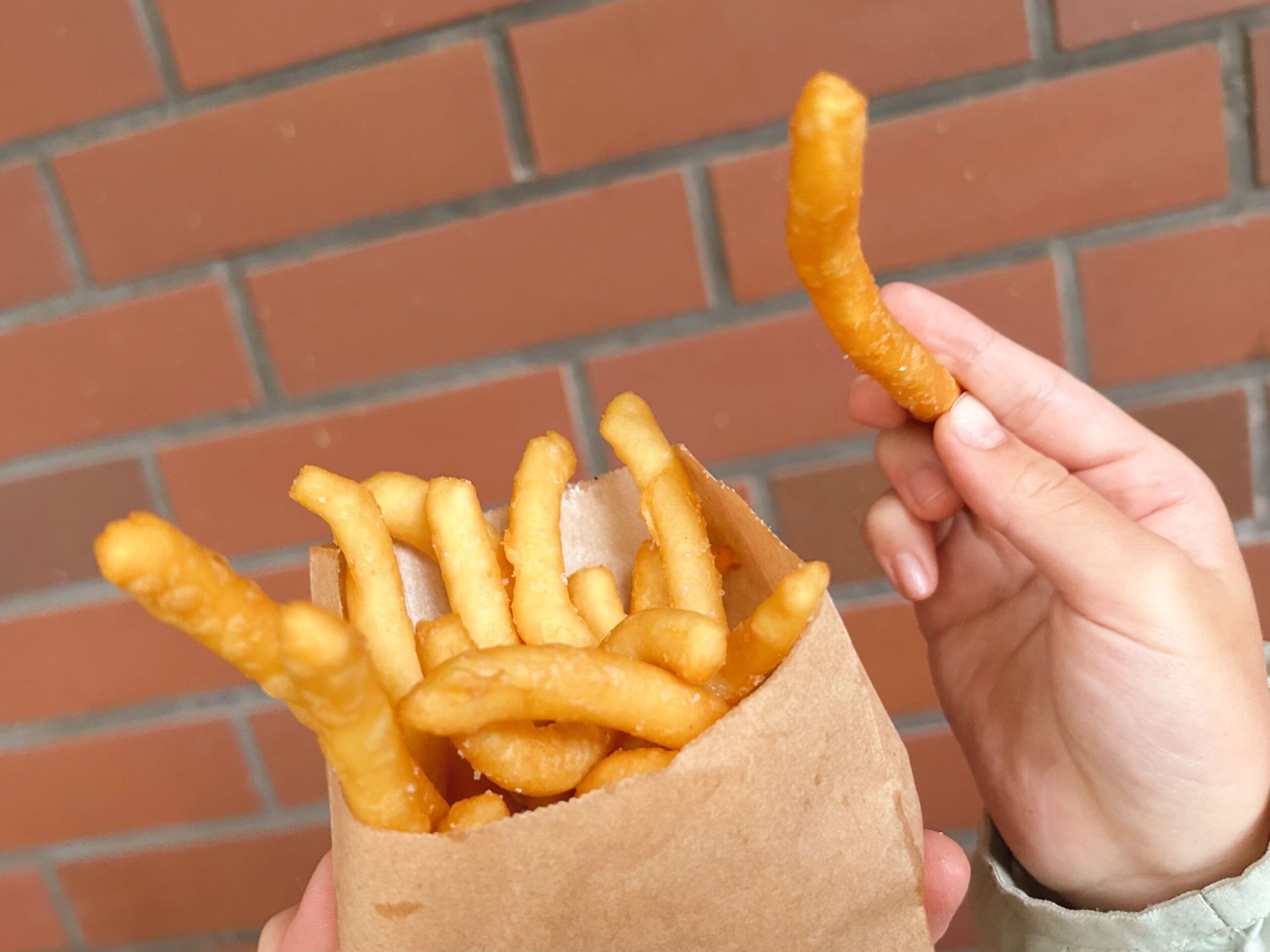 放送部 Shonan power stationの「3939ポテト!(税込350円)」では取材をしていると伝えると、作っているところまで見せてくれました。ポテトを絞って、ジュワッと熱い油で揚げ、塩を振って味を付けたら3939ポテト!のできあがり!アツアツのほっくほくでちょうど良い塩加減。子どもも大人も喜ぶお味でした。