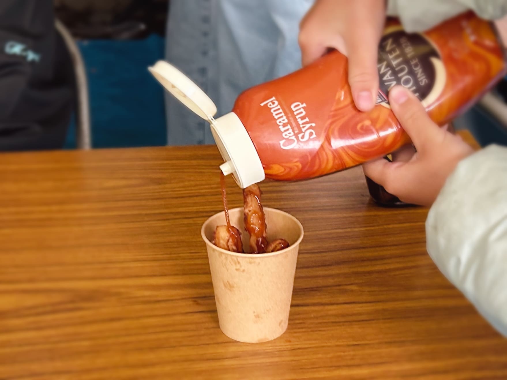 甘いものは、第41回聳塔祭実行委員会の「チュロス(税込300円)」をチョイス。自分でソースをかけます。ソースはチョコとキャラメルが選べました。
