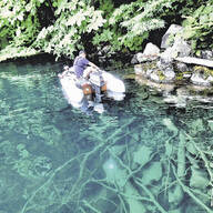 海とはまた別の、青とも緑とも取れる、美しい水景世界。陽光が差し込むことでその美しい光景に磨きがかかります。