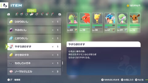 普通にレベルアップさせるだけでも、なつき度を上げることができますが、なつかせたいポケモンにやすらぎのすずを持たせた方がより効率的になつき度を上げることができます。