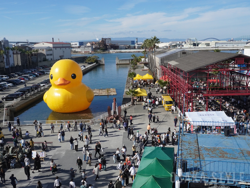 今年も高さ9.5メートルの巨大なアート作品「ラバー・ダック」が登場するほか、食・農・アートを楽しむマルシェ「みんなのうえん祭」、体験型アート作品の展示、北加賀屋のまちを巡るスタンプラリーなどを展開する。併せて、アヒルちゃんオリジナルグッズを販売する。