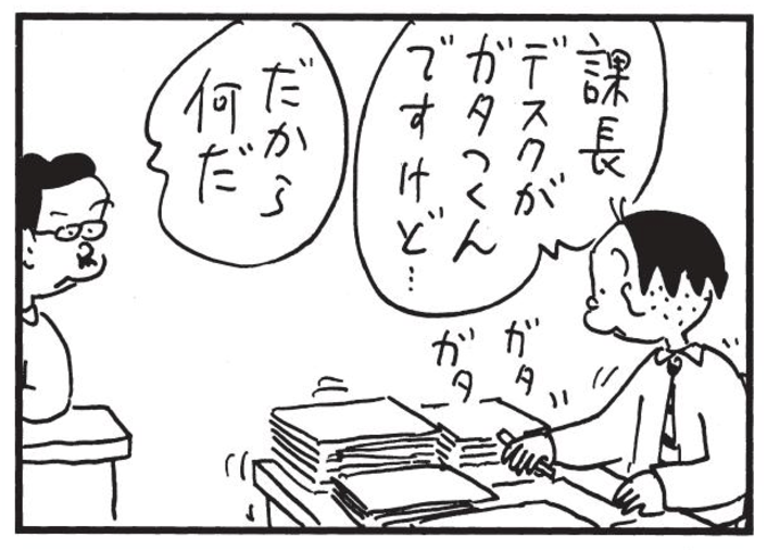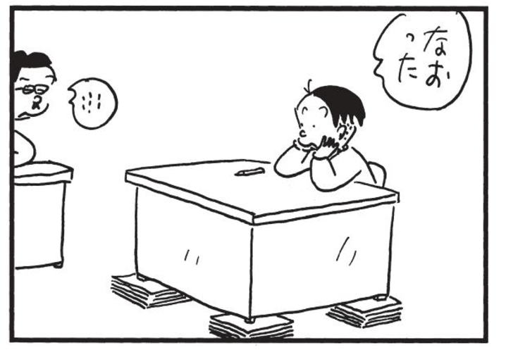 朝イチ更新!4コマ漫画『かりあげクン』デスクのガタつきを賢く調整…?