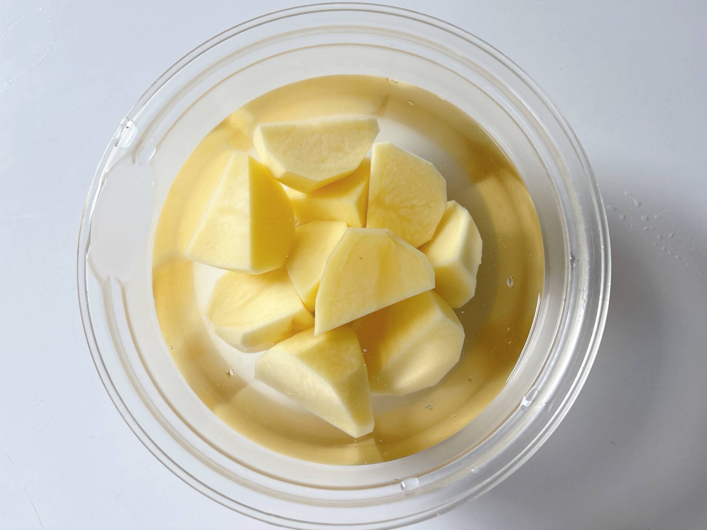 じゃがいもはひと口大に切り水にさらしておきます。