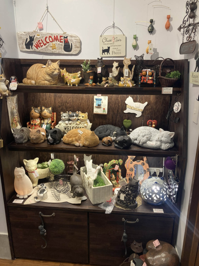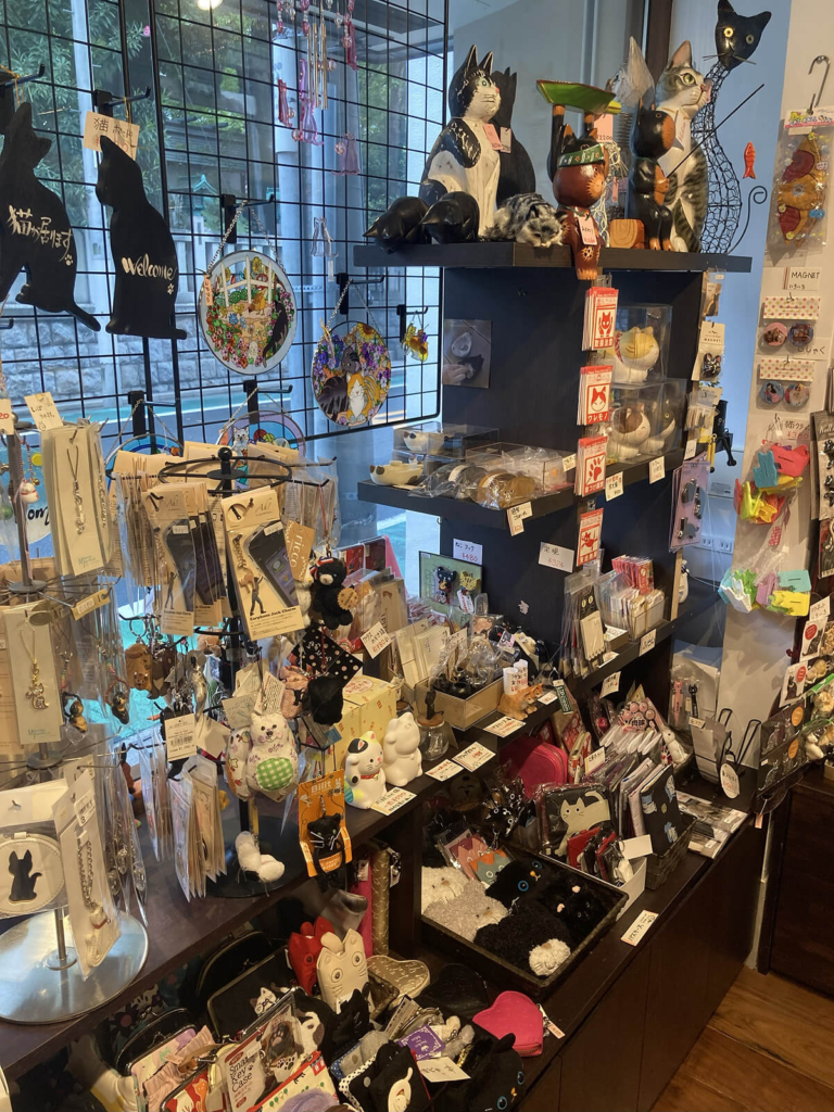 店内には猫に関連する小物や雑貨がところ狭しと陳列されており、猫好きにはたまらない空間となっています。