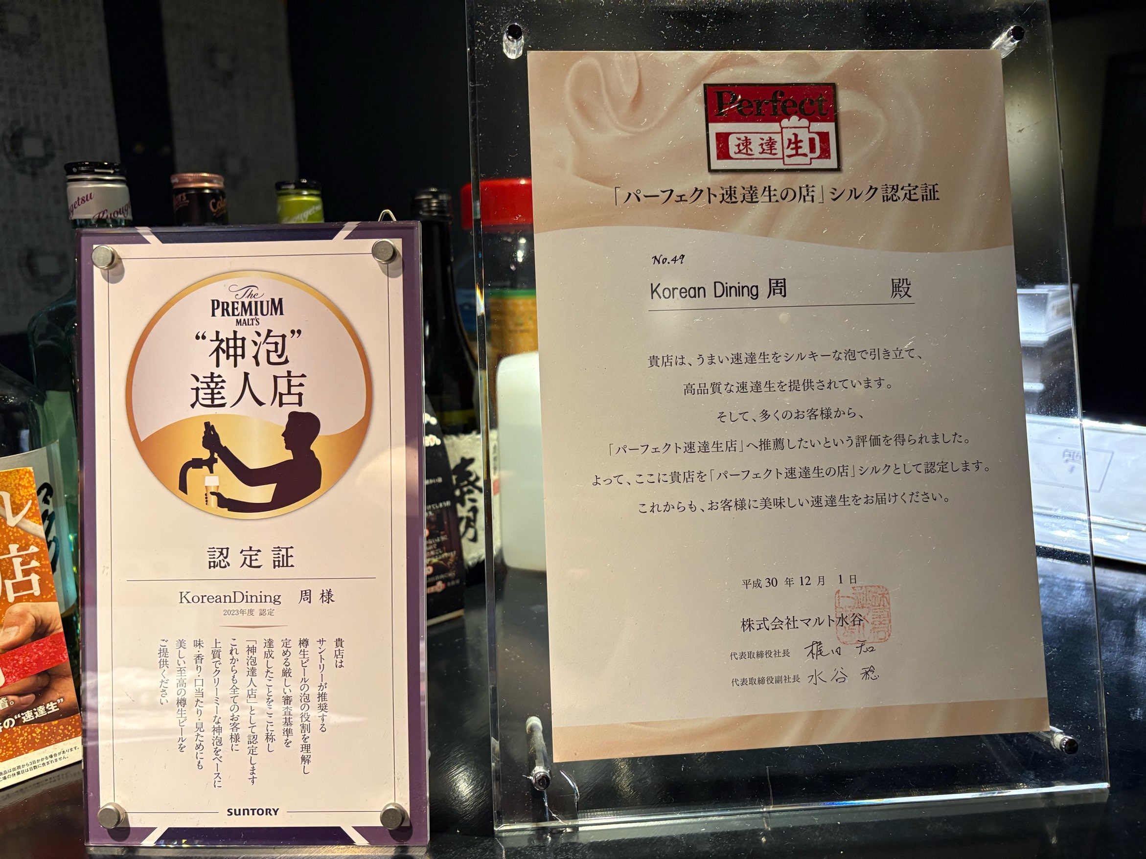 おいしさに驚くのもそのはず、こちらのお店はプレミアムモルツの提供元、サントリーさんから直々に“神泡”達人店に認定された店舗でした。