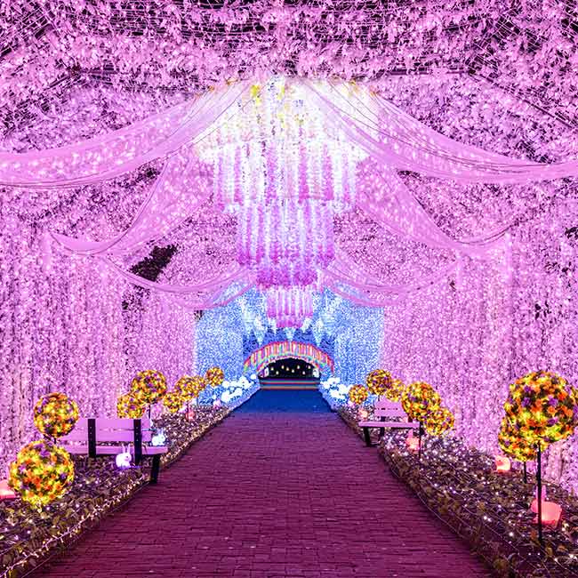 ピンク色のシャワーを体感する「ファンタジーロード」、星の夜へと没入する「スターライトロード」など、異なる5つの空間を巡ってみて。