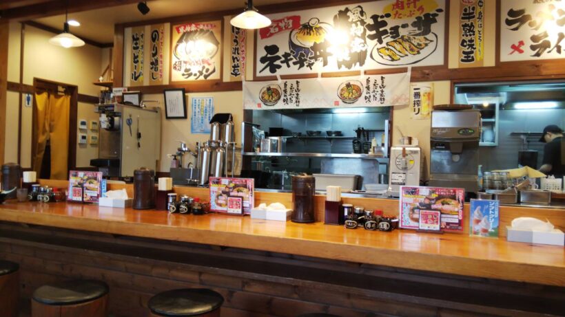 昼下がりの13時すぎ、ほどよく賑わう店内には湯気とともに豚骨の香りが漂い、空腹を優しく刺激してくる。入り口にはアルコールスプレーが設置され、感染症対策も万全。カウンター席とテーブル席があり、ひとりでも仲間とでも落ち着いて過ごせる空間だ。喫煙不可なのも嬉しいポイント。注文は食券前払い制で、迷わず選んだのは「豚骨塩MAXラーメン」。