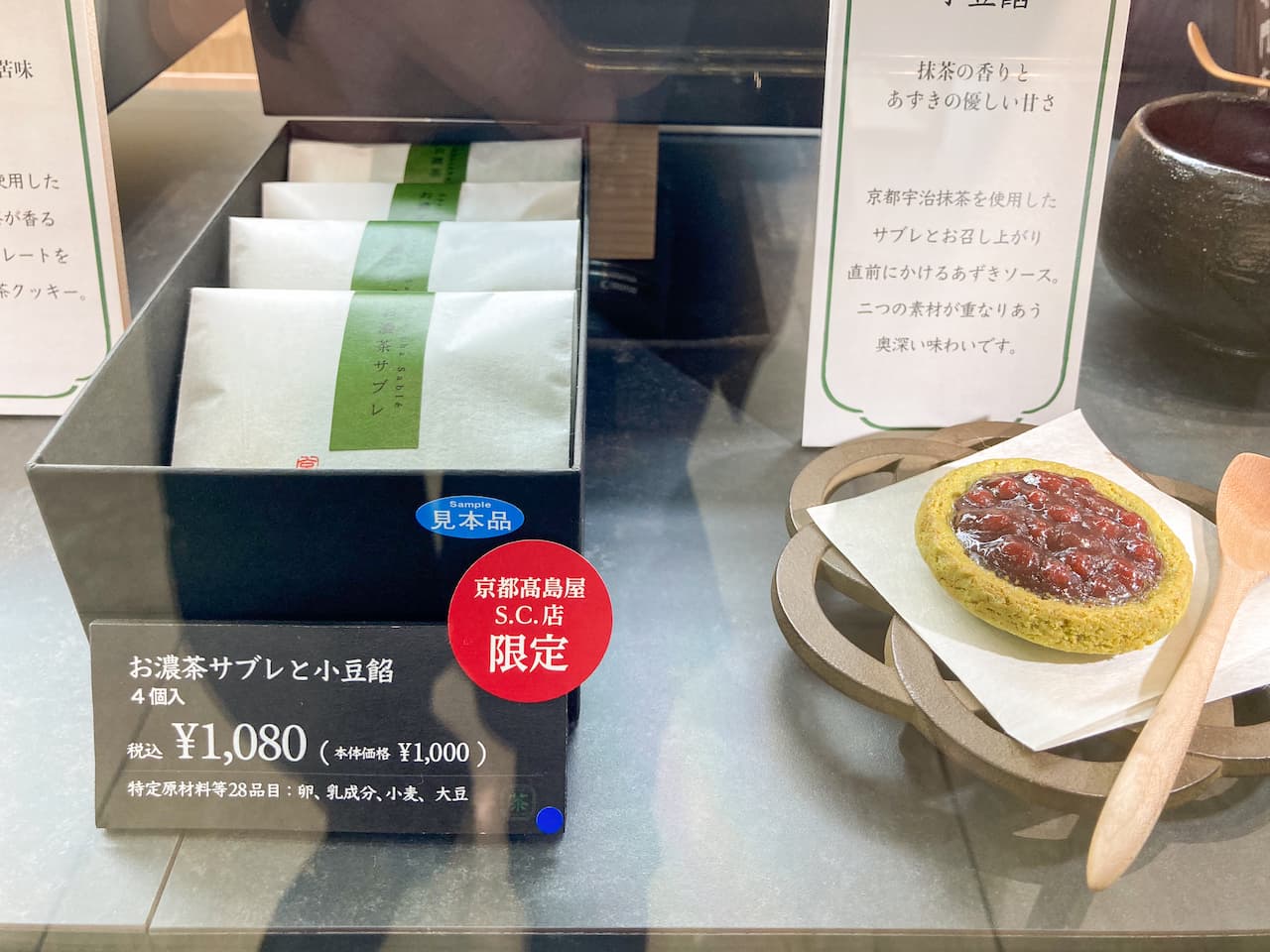 サクサクの抹茶サブレに、別添えのあずきソースをかけていただく「お濃茶サブレと小豆餡」は、京都高島屋限定商品。
