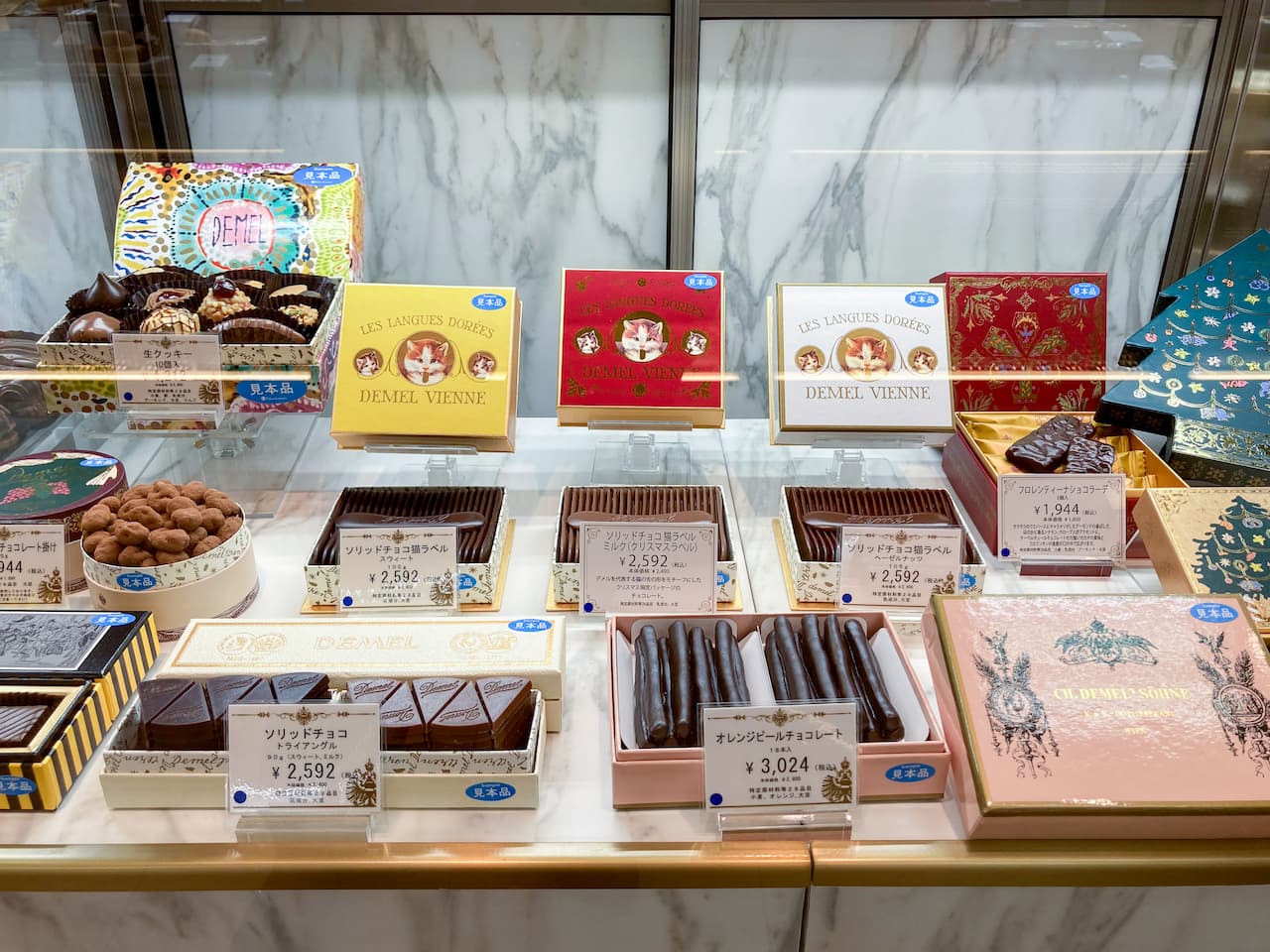 ショーケースには看板の「ザッハトルテ」をはじめ、チョコレートや焼き菓子などがずらり。「デメル」ならではの美しいパッケージにもときめきます。