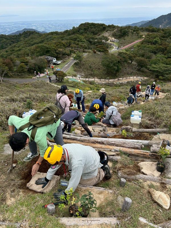 三重県菰野町の御在所岳の山上公園で9月23日、植樹体験の催しがあり、県内外の38人が参加した。御在所岳で種を採取して苗に育てたミズナラ、アセビ、ドウダンツツジの計100本を植えた。木を植える体験は初めてという子どもたちもいたが、指導も分かりやすかったそうで、「また参加したい」という感想が多かったという。