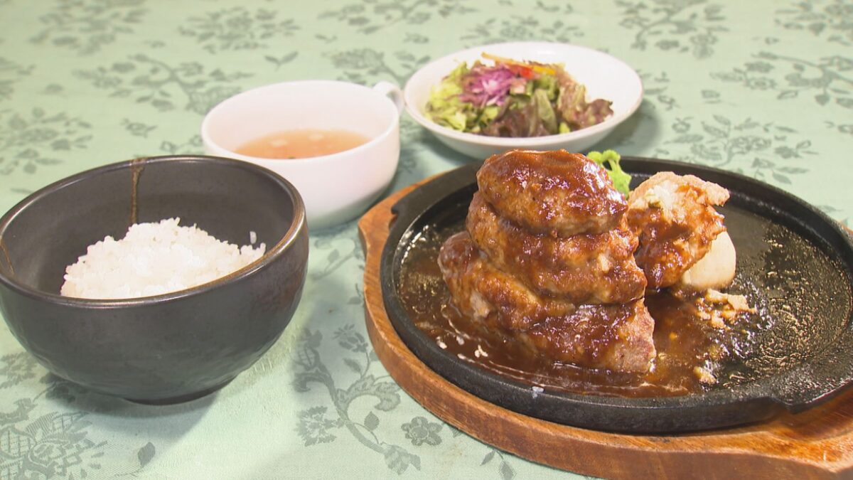 お店のハンバーグのこだわりは、まず国産牛と豚の合い挽き肉を使用している点。そして、一般的なハンバーグには欠かせないナツメグを使わず、その代わりに「企業秘密の隠し味」をたっぷり入れることで独自の風味を確立しています。さらに特徴的なのが、二度挽き。一度挽いた肉をさらに挽くことで、究極の「柔らかさ」にこだわっているそうです。昔ながらの作り方を大切にしながら、隠し味には長廣さんのアレンジが加わるという、進化し続ける老舗の味です。
