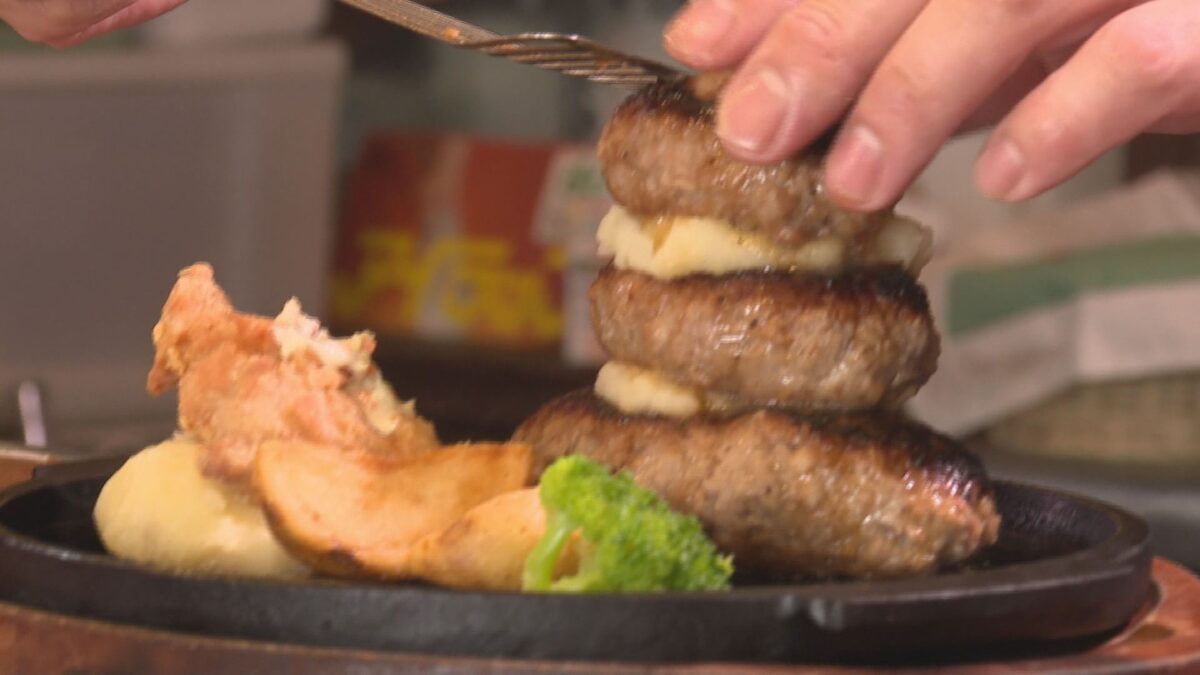 衝撃の「飲めるハンバーグ」!エッフェル塔を思わせる三段重ね