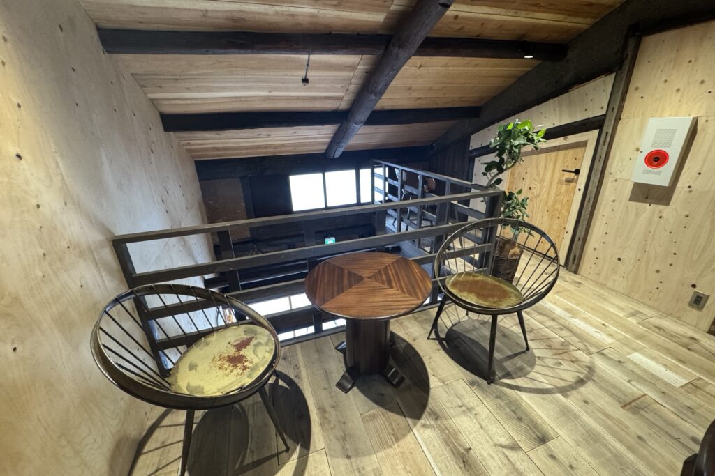 2階には屋根裏のような落ち着くテーブル席もあります。