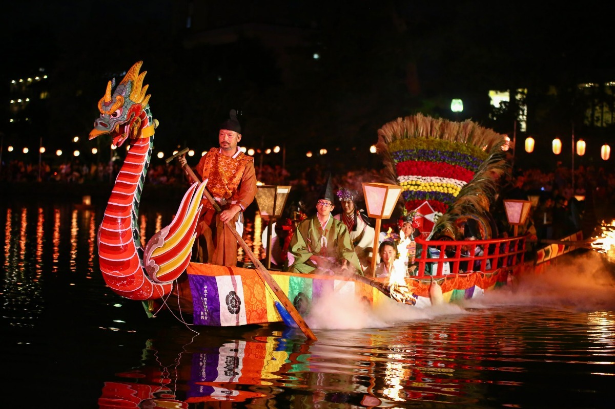 奈良県奈良市の猿沢池で行われる「采女祭」は、中秋の名月に執り行われる伝統的な祭事。