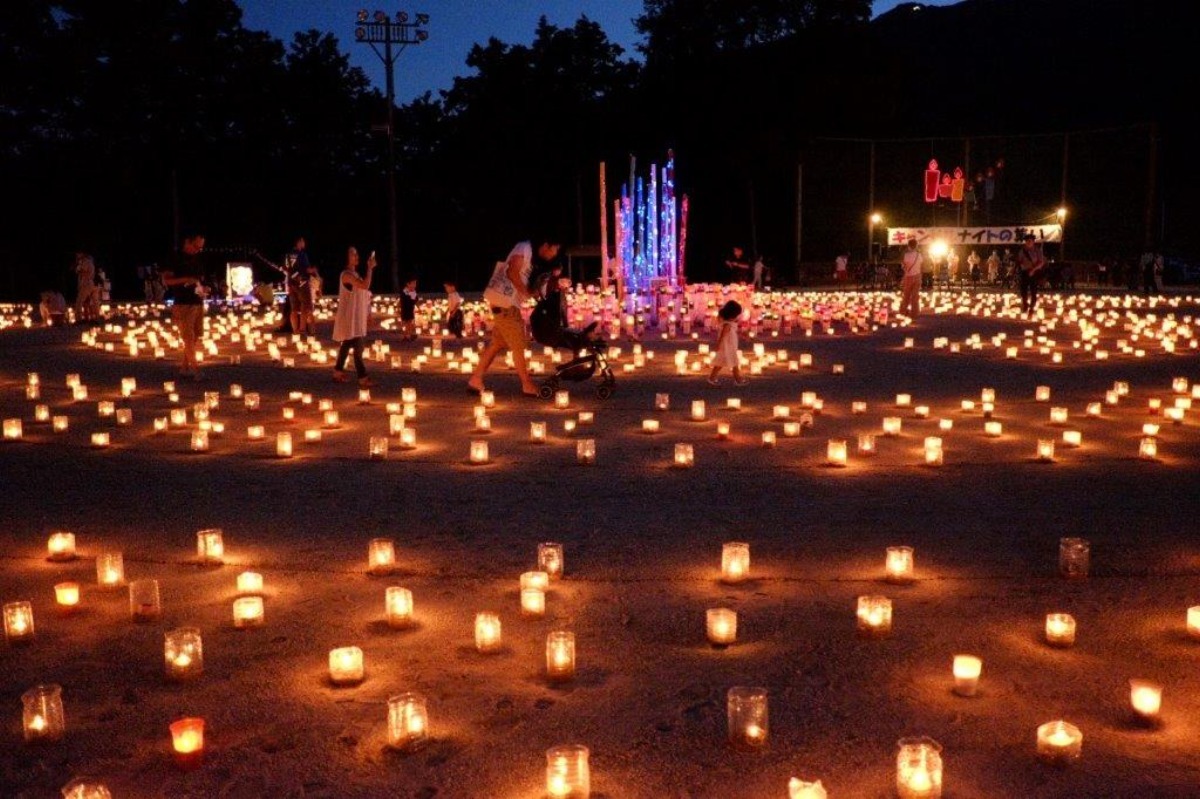 会場となる新庄第二健民運動場には3,500個のキャンドルが並び、やさしい灯りが幻想的な空間を演出する。