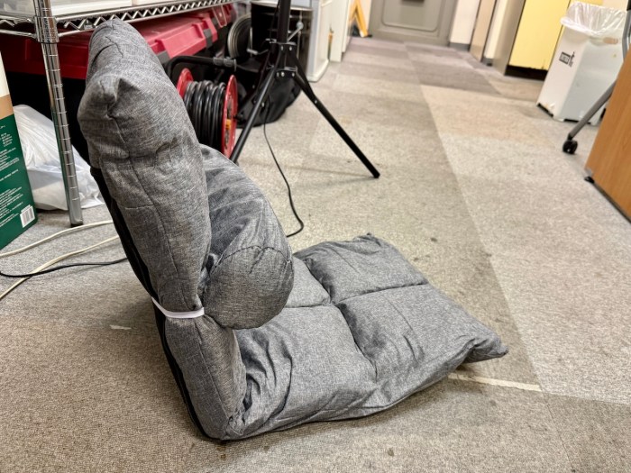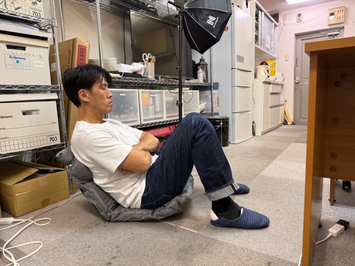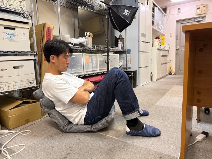 それでもこの座椅子が「編集部の新しい安らぎ」になる可能性は2%くらいあるだろう。無印のソファはもう帰ってこないのだ。いざ座ってみると……