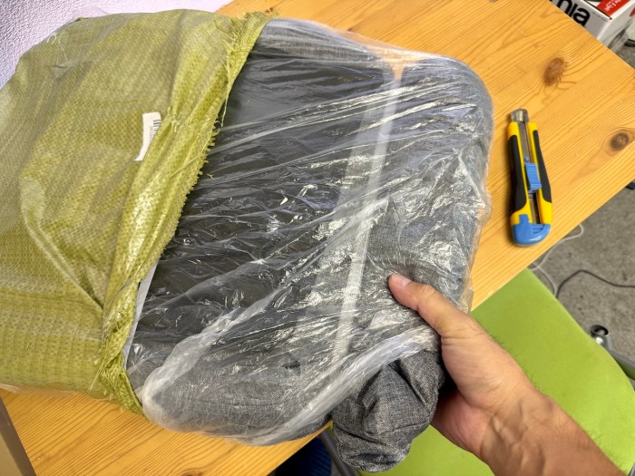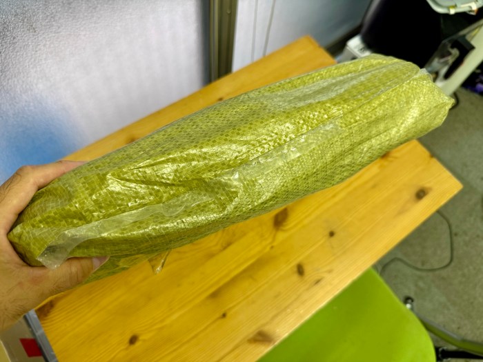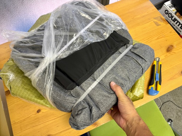 注文から約2週間経って、やっと編集部に商品が届いたのだが……袋を手に取った瞬間、思わず固まってしまった。信じられないほど厚みが無いのだ。驚くほどにペラペラである。子供用の枕でももう少し分厚いだろう。マジかよ。