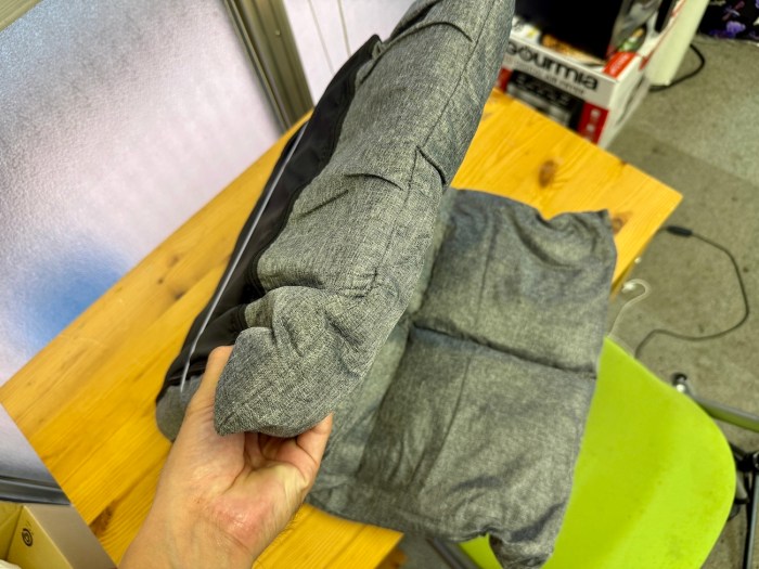 これで「肉厚クッション」を名乗るとは、なかなかのチャレンジャーである。表面の生地は “ふわふわ” というより “シャカシャカ” でクッション性はほぼゼロ。