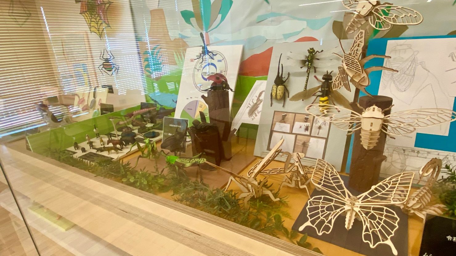 ガラスケースの中の展示物は、ワークショップの一例です。ワークショップは、ゆいの森あらかわ公式サイトのイベント情報一覧から申し込むことができます。